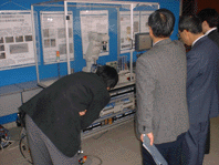 学生による発表会、展示の一部を紹介しますと、「GAを用いた路線網のシミュレーション」の発表、「国際安全規格に基づいた穴開けマシン」の発表 ・展示、そしてポリテックビジョン2002の発表部門で優秀賞を受賞した「2輪駆動自転車」の展示などがありました。学生にとっては一年間苦労して取り込み続けた課題の発表・展示であり、当大学校での訓練成果を遺憾なく発揮していました。この発表会は公開ということもあり、企業や事業主団体および東北の能力開発施設からのお客様も多数来校され、発表会では熱心に耳を傾けたり、作品展示では実際に製作された展示物を見ながら、その作品を担当した学生に数多くの質問をしたりと、活気あふれる公開発表会でした。